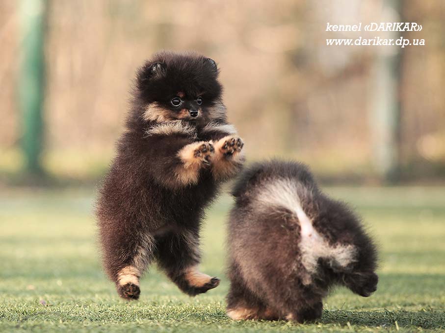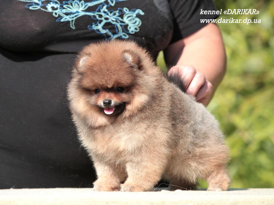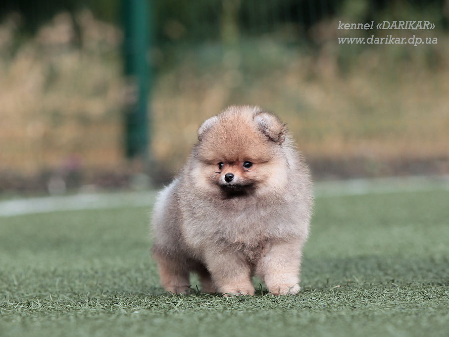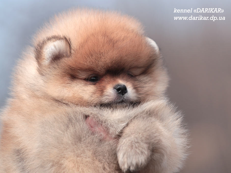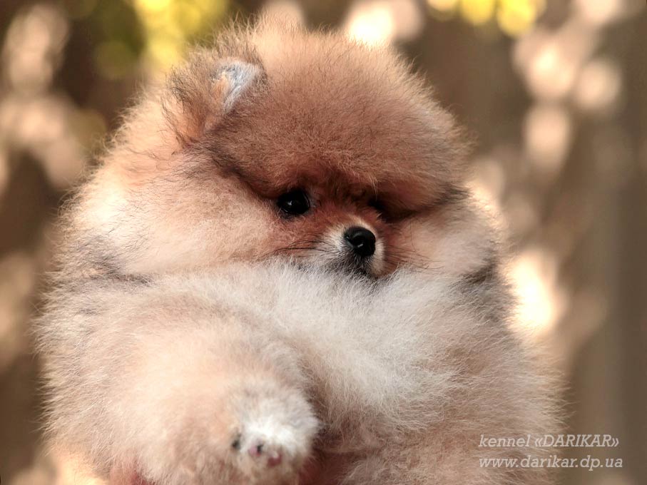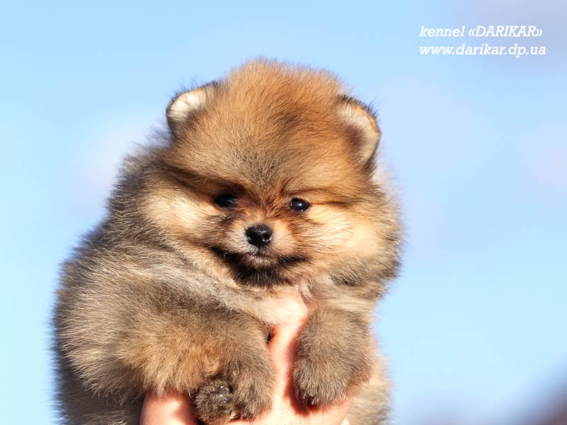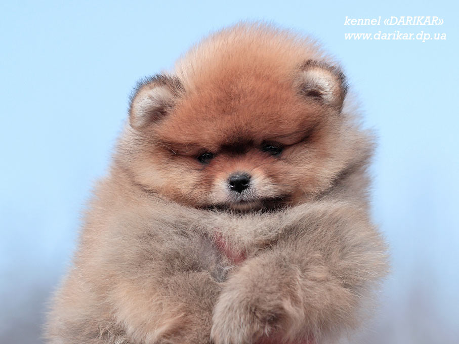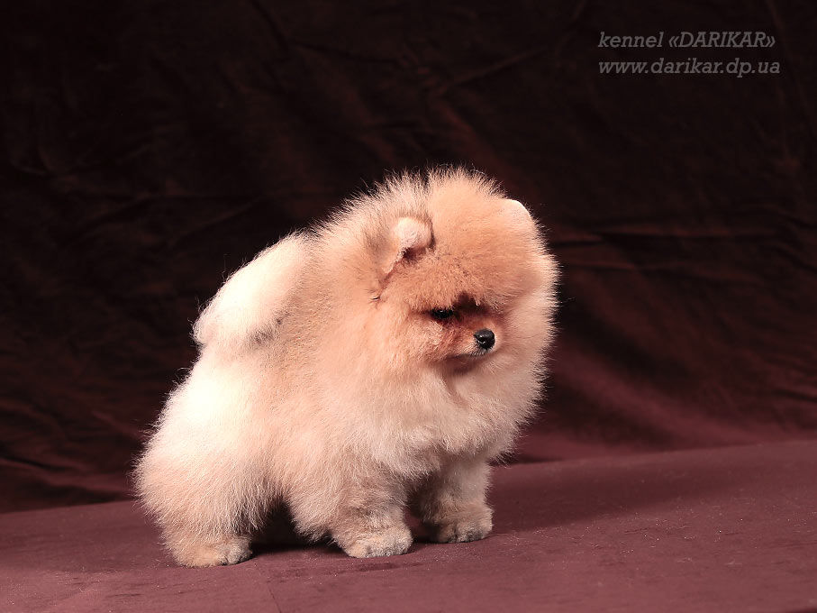 On this page of our website we present photos of Pomeranian puppies received at different times from different litters, both boys and girls. All of them were obtained in the Darikar nursery from parents whose photos you will find by wandering through the pages of this site. On the presented photos of Pomeranian spitz puppies aged from two to four months. In our deep conviction, the age of two months allows you to present a puppy for the first time for the show. Up to this age, puppies are still too small and cannot demonstrate the features of their exterior. At the age of two and a half months, babies are already firmly on their feet and can demonstrate movements. which is very important for specialists versed in the anatomy of the breed. Only by considering the movements of a puppy, it is possible to assume with a high degree of confidence the appearance of an adult animal, its features, strengths and weaknesses of the exterior. At the age of three and a half months, puppies begin to change their fur and this is very clearly visible in the photos, this age has the slang name "Pyrzik", which very accurately characterizes the changes in appearance. The puppies shown in the photos cannot be sold now. Some of them already have new loving owners, others are left in the nursery for breeding work and participation in exhibitions. These photos can be viewed in full size. To do this, you need to click on the image and then you can view it in slide show mode by clicking on the arrows on the right and left.
